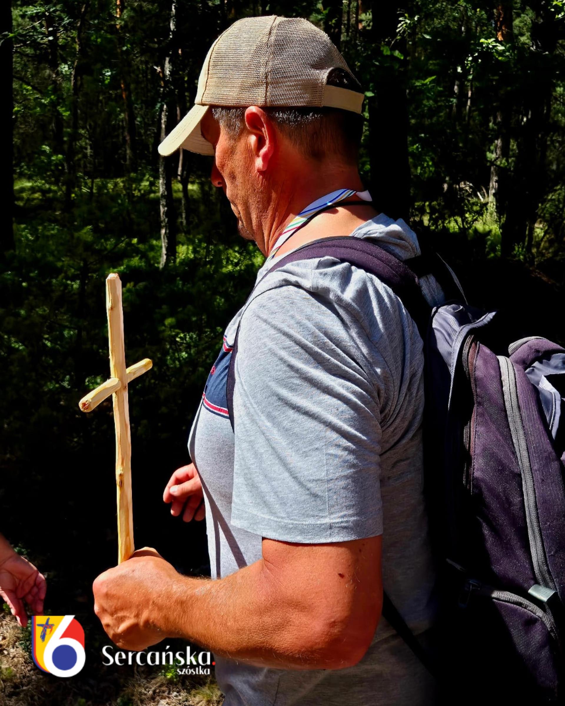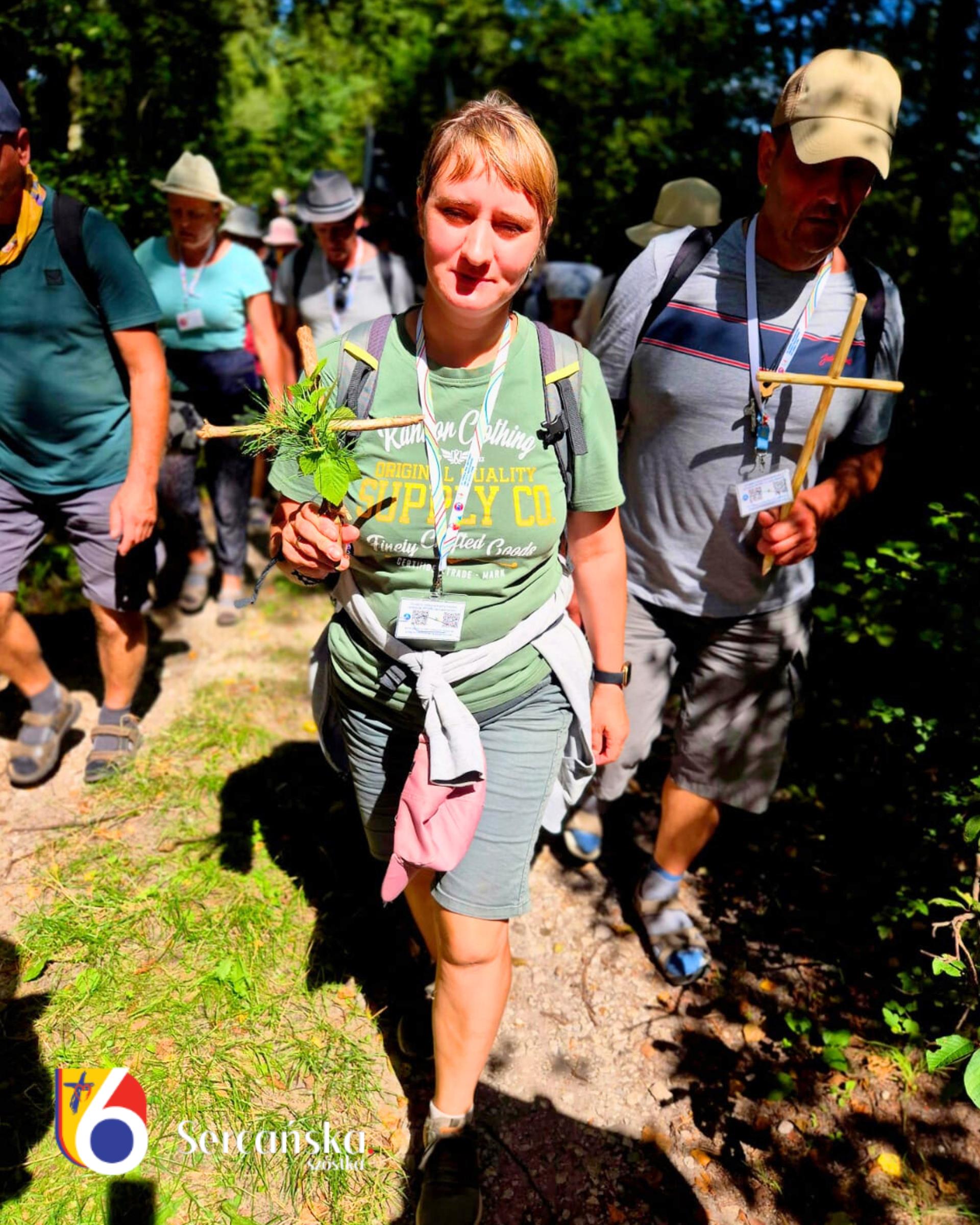 Krzyż jest więc tego dnia ważnym elementem naszego pielgrzymowania. Wielu pielgrzymów na postoju obiadowym przygotowuje własne krzyże: ze znalezionych patyków, traw i mchów. Przy tej czynności spotykamy także siostrę Weronikę.
